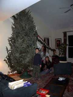 Griffin is extraordinarily proud of our Christmas tree. At a whopping Eleven feet, three inches (11'3"), it is by far the biggest tree we have ever had, and is probably taller than the White House Christmas Tree.