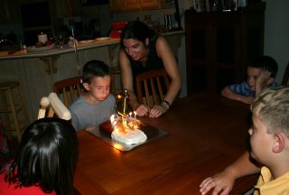 Griffin as King Arthur celebrates his tenth birthday! Maman made a suitable cake, replete with Sword, Shield and Coat of Arms (and darn tasty!). The invited